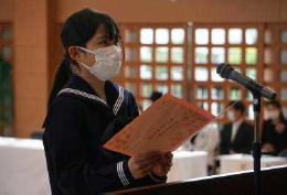 4月7日に16名の新入生を迎え、令和4年度牧之原中学校がスタートしました。上記写真は、教科書授与と新入生代表生徒が決意を述べているの様子です。