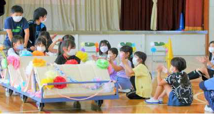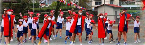 2022 夕宮の子運動会、スローガン「絆 ~心を一つに 目指せ優勝~ 」をめざし、競技も演技も、最後まであきらめない子供たちの姿が見られました。一体感や協力性を表現した応援合戦、全校児童そろってのソーラン節、子どもたちがアイデアを生かして考えた障害物競走、なかよし班リレーなど、見どころいっぱいの運動会となりました。