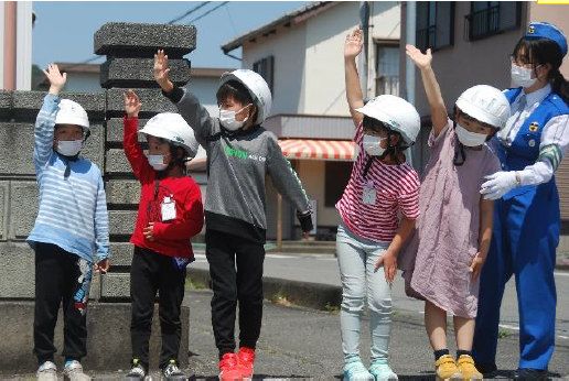1,2年生は交通安全指導員の皆様に道路の歩き方を指導していただきました。