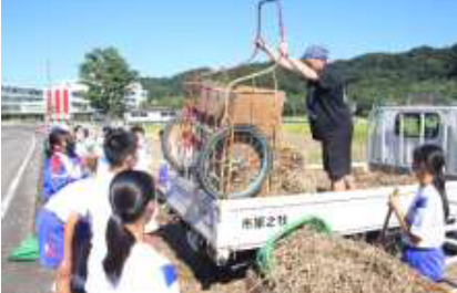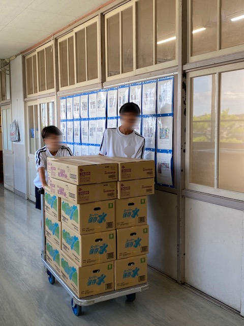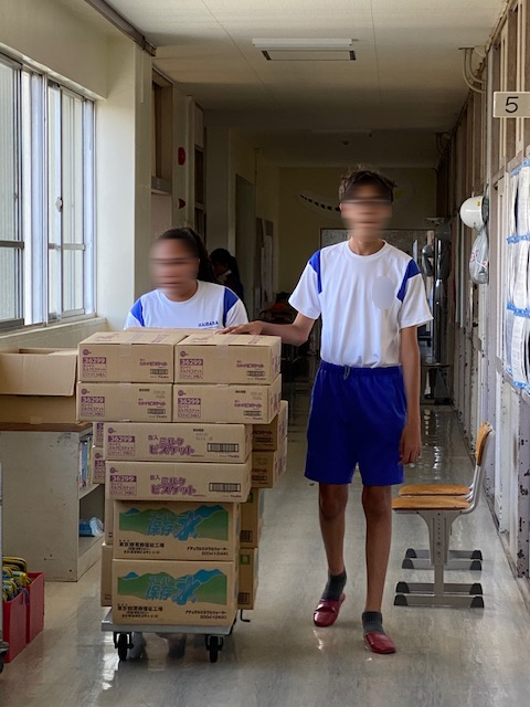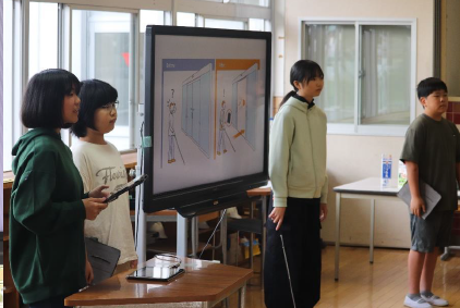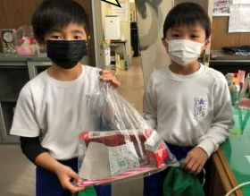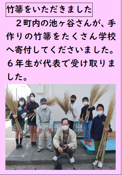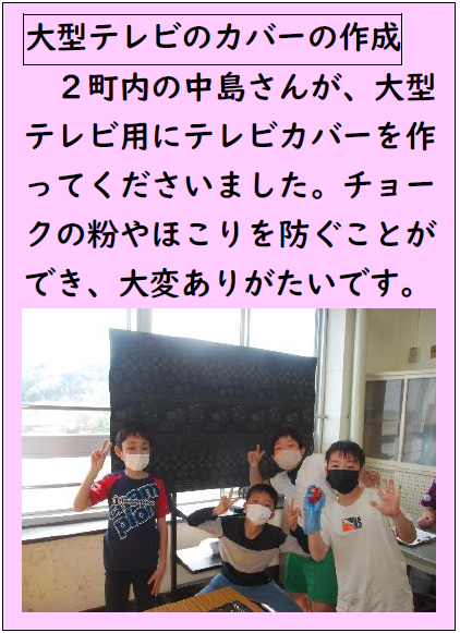 上記写真は、「大型テレビのカバー」と「竹ほうき」を町内会の方々より寄贈していただいた写真です。地域の皆様の温かいお気持ちに支えられ、子供たちの学びがますます深まっています。