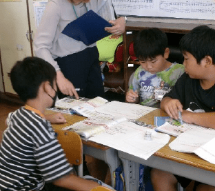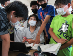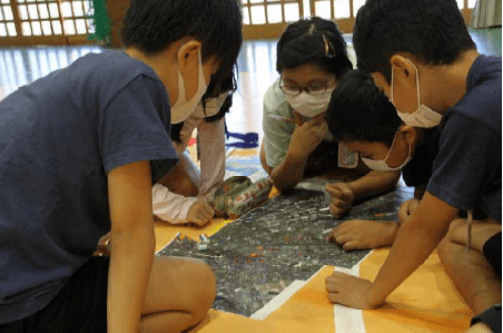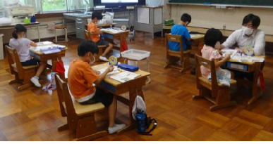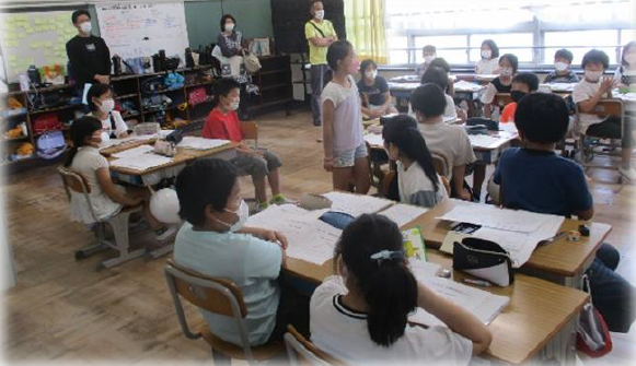 上記写真は、「やまびこサマー教室」の様子です。1年生の堂々としたはじめの集いから始まり、ミッションをクリアしながら地域を探訪したウォークラリー、駄菓子屋買い物体験やカレー作り、ミッション脱出ゲーム。子供たちのやってみたいことやこんな学校にしたいという願いが込められ、活動を終えるたびに、子供たちの「満足」「自信」の笑顔が輝きました。