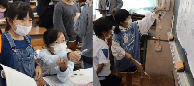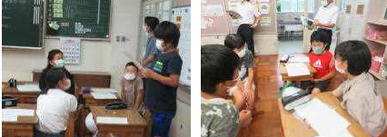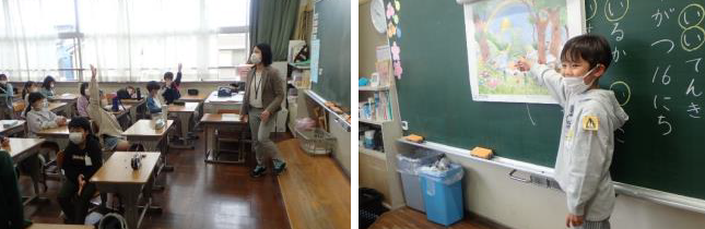上記写真左側は、1年生の授業風景です。幼保園の先生方が授業参観をしている中でしたが、集中力を持って「聴く」「話す」を大事にした授業を創ることができました。幼保園の先生方もびっくりするような1年生の姿でした。上記写真右側は、「ふじのくに花の都しずおか推進協議会」様のご協力で、フラワーアレンジメント体験講座を園芸委員の子供たちが体験した様子です。お花の素敵な香りに包まれた教室で、園芸委員の子供たちは、地域の方に見守られながら素敵な体験をさせていただきました。