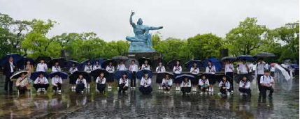 下段の写真は、3年生の修学旅行の写真です。「考え、学び、経験を成長に」のスローガンのもと、福岡・長崎・熊本での修学旅行が行われました。あいにくの天候でしたが、最高の思い出をつくることができました。