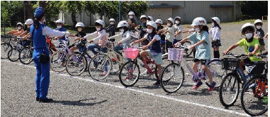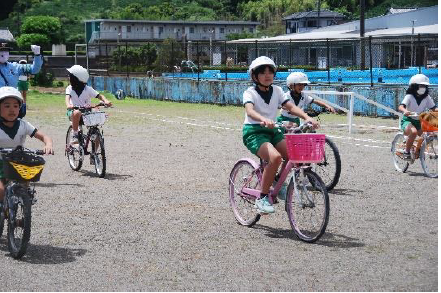 上記中央の写真は、本年度相良地区の代表として地区子供自転車大会へ出場が決まり練習をしている様子です。