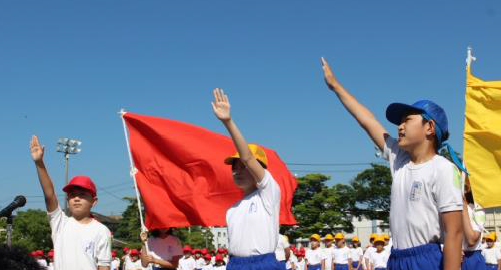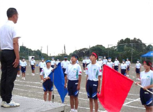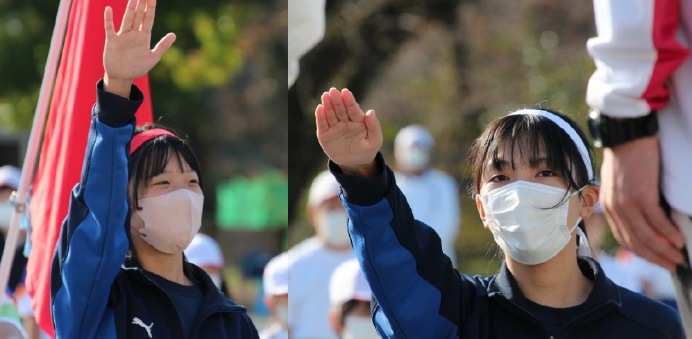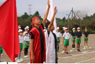 前日まで雨空とは打って変わって晴天の中、校内運動会が行われました。スローガンは「2022 みんなでやりきる 運動会」のもと、1年生のかわいらしい開会宣言、6年生による地域の皆さんへの感謝の言葉、各色の応援団長の力強い選手宣誓による開会式でスタートしました。