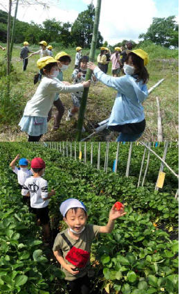 いよいよ各学級で「ふるさと科」の学習が始まりました。6年2組は、紅林農園に行きいろいろ体験させていただきました。さわやか学級は、藤田農園でイチゴ狩りをさせていただきました。
