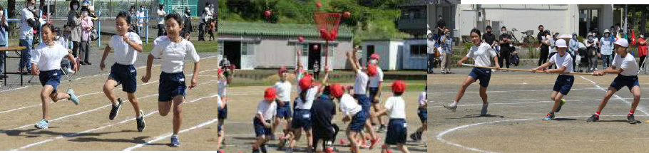下段の写真は、5月28日(土)実施の運動会の練習風景です。今年のスローガンは「みんなキラキラ 坂部っ子 仲間とともに 燃えあがれ!」です。キラキラ輝く子供たちの活躍をぜひ応援してください。