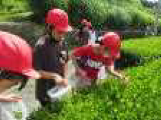 上記写真は、萩間小学校の各学年、学校の輝きです。最上段は、JRC(青少年赤十字)の入団式の様子です。2段目の写真は、相良中学校の2年生4人が来校した職場体験の様子です。1年生から4年生の学級で3日間過ごし授業等のお手伝いをしていただきました。 3・4段目の写真は、5年生の米づくり準備である「塩水選」と「種まき」です。今年も大石通之さんのご指導のもとで行いました。5段目は、3年生の市内探検とお茶摘み体験の様子です。お茶摘み体験後は、ボランティアの方々に摘んだお茶の葉を使って天ぷらを作ってもらいました。