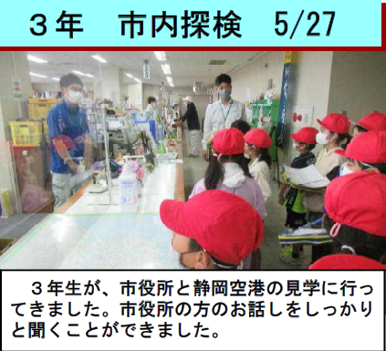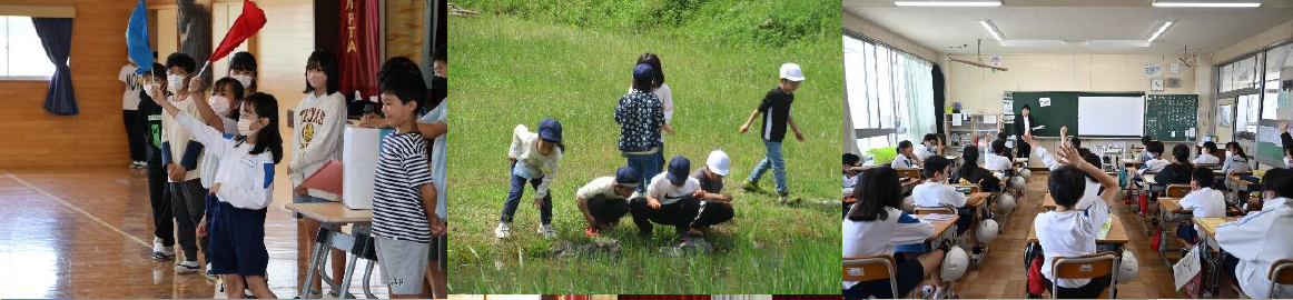 上記写真は、1,2年生の生活科で行ったざりがに釣りの写真と夕宮の子運動会を成功させるために6年生が中心となり計画を進めている様子です。そして、4年生は、島田市相賀の浄水場で社会科見学をしている様子です。