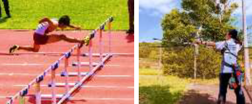 上記写真は、中体連の大会での活躍の様子です。陸上部では、女子走幅跳びで杉本さんが県大会、東海大会で優勝して全国大会に出場しました。また、剣道部女子個人戦で杉本さんが県大会準優勝し、東海大会、全国大会に出場しました。また、弓道部の丹羽君も個人で県大会優勝し、全国大会出場を果たしました。
