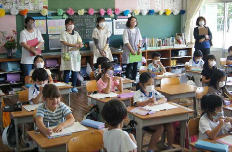 上記の写真は、夏休み明けの授業風景です。長期休業を終えて子供たちは、授業を通して友達や先生方との関わり合いを楽しんでいる様子です。また、10月に行う運動会の練習も始まりました。