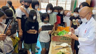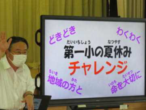 上記の写真は、中川根第一小学校の1学期の授業の様子と夏休みを迎える会で校長先生から「日々の授業を充実させてきた4ヶ月」という内容で全校児童に話をしている様子です。また、下段真ん中の写真は、川根本町の取組として実施している「わんぱくチャレンジスクール」の様子です。町内4つの小学生が各々に選んだ講座を中央小学校や第一小学校などを会場にして、町内の方を講師に学んでいる様子です。