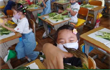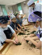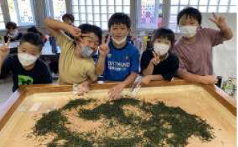 上記写真は、牧之原市キャリア教育プログラムの一環であるプロジェクト「アースランチフェスティバル」の様子です。昨年に続いて2度目の挑戦の5年生。今年は、『原っ子ベジタブルサンド』でチャレンジをしました。学校農園で育てた野菜や大茶園をもつ牧之原ならではのお茶、恵みの森でとれた栗など、豊富な食材をご飯やポテトではさみ、おいしいサンドが出来上がりました。もう一つの写真は、3年生の「お茶の手もみ体験」の容子です。5月に牧小の茶園で摘んで蒸して冷凍保存したお茶を、牧之原手もみ保存会の方々の指導で手もみ茶を作りました。