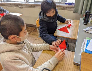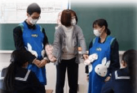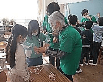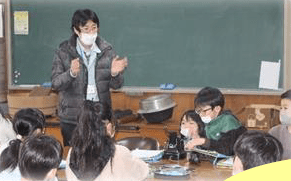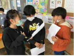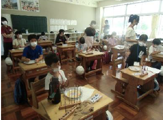 上記写真(左)は、「感謝の折り鶴」と題して川小応援隊の方々に感謝の気持ちを込めて折り鶴を折っている写真です。また、中央の写真は、2年生が行った「バスの乗り方教室」そして、右の写真は、3年生が昔の生活について学習している写真です。