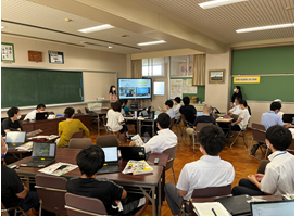 10月25日(火)七耀祭「文化発表会の部」が行われましたどのクラスも、これまでの練習の成果を発揮して、素晴らしい歌声を体育館に響かせました。また、もう一つの写真は、相良中学校の1年生と、地頭方小学校、相良小学校、菅山小学校、萩間小学校の6年生がオンラインで交流会を行いました。和やかな雰囲気の中で、各学校の紹介をしたり、小学校からの質問に中学生が答えたりして互いに交流を深めました。