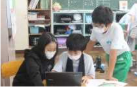 上の写真は、牧之原小学校児童の輝きです。学校生活において、体験的な学習として、「6年生の火おこし体験」「4年生の梅の実の選定」「3年生の茶摘み体験」を行いました。また、下段の写真は、コロナ禍で思うように授業参観会が進められなかったため学校での授業風景をGoogleChromeのmeetを使って参観していただきました。保護者が教室にいない授業参観は普段の日常の様子でした。緊張することなく真剣に友達と協力しながら授業に取り組む姿がそこにはありました。