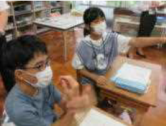 上記写真は、授業風景です。中川根第一小学校では、『言葉を交わし、考えを深めていく学習』に趣を置いています。「こうなるんじゃないかな。」「こういう見方もできるよね。」・・・。詩を味わう国語、行動の在り方を考える道徳などで、一人ひとりの思いを伝え合い、考え合うことで様々な角度から考え、よりよい答えを導き出そうとする学び合いが見られます。また、中川根第一小学校では、『少人数の強みを生かした個別の学習』が充実しています。それぞれの方法を選んで友達に伝えたい考えを作ります。友達の他に先生とも話しをして考えをはっきりさせます。