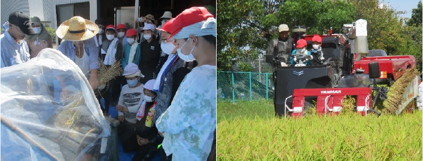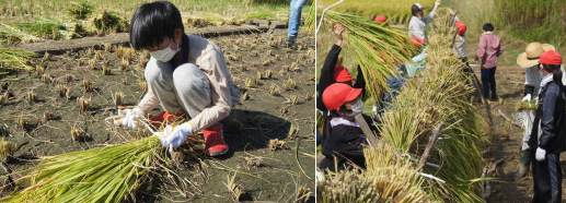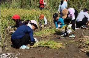 5年生が稲刈りをしました。6月に田植えをした時には小さかった苗が、大きく育ちたくさんの稲穂が実りました。どんな味のお米なのか食味会がとても楽しみです。