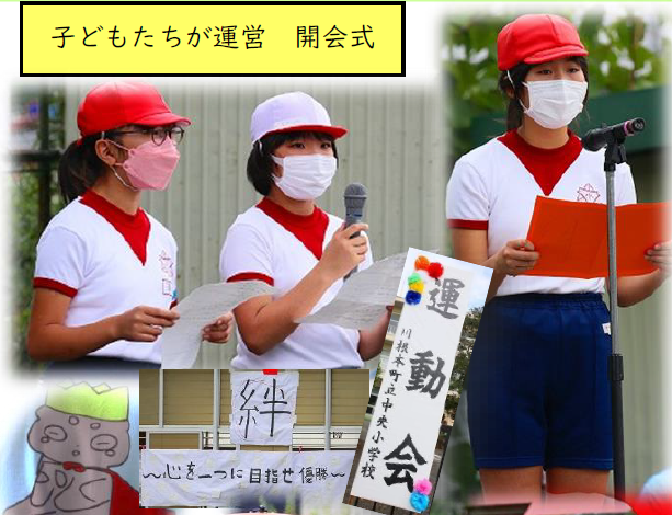 運動の秋:10/14に、牧之原小学校校内運動会が行われました。天候に恵まれ、結団式で赤組・白組それぞれの応援団長が「勝ち負けを越えた運動会をみんなで作り上げよう」と全校に呼びかけました。練習、準備、当日の競技に全員で全力で取り組むことができた素晴らしい運動会になりました。(写真上段右、下段)