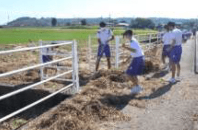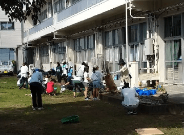 9月23日から24日にかけて静岡県を襲った台風15号。24日早朝に確認すると、敷地は大量の漂着物に覆われていました。「榛中を元通りにできるだろうか・・・」と途方にくれる中、多くの方に温かい声をかけていただくとともに、地域の方、教育委員会にも支援していただき、職員・生徒も力を合わせて無事に復旧することができました。