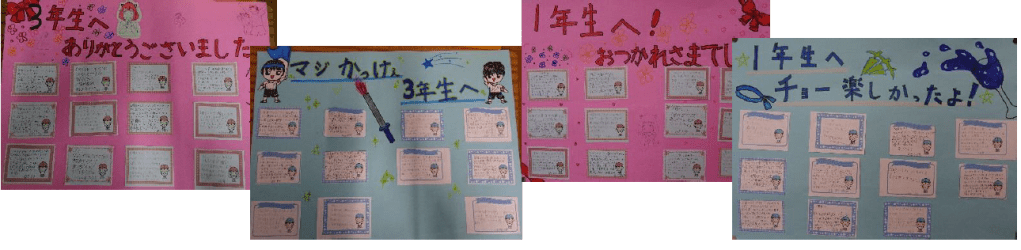 上段の写真は、「ペアとの出会いの会」の写真です。今年度も1・6年、2・5年、3・4年でペアを組みます。それぞれのペアが上級生を中心に仲良くどんな楽しいペア活動を展開していってくれるか今から楽しみです。