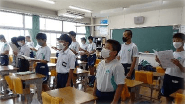 梅雨に入り雨が続いていますが、子供たちは元気に生活しています。 各学年講師を招いた研究授業を行ったり 、 校外に出て体験したりと、充実した教育活動を行うことができています。また、秋の運動会に向けて、全校で色別抽選会を行ったり、代表委員会で色別が協力するための企画を話し合ったりしています。