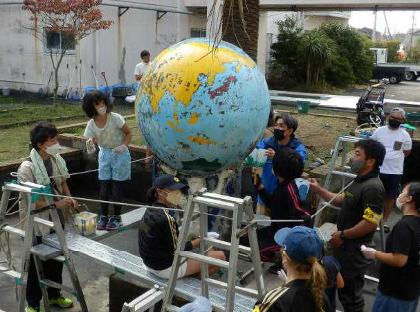上記写真は、中央小学校の授業推進(「教わる授業から『学ぶ授業』へと進化する」)の様子と中庭にある中央小自慢の池を掃除する様子です。中央小学校の授業は、まごころをもって「話す」「聴く」を基本に自分たちで授業をつなげていこうと取り組んでいます。1学年4クラスの大きな学校ですが、全校体制で丁寧に授業実践を重ねています。一方、中庭にある池の掃除は、中の水を抜いていったん魚を逃がしての大掛かりな作業でしたが、PTA親子活動「中庭の池、水抜き大作戦」と題して親子で母校の自慢を奇麗にすることができました。また、池の横にある地球儀もペンキを塗り直してリニューアルすることができました。