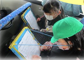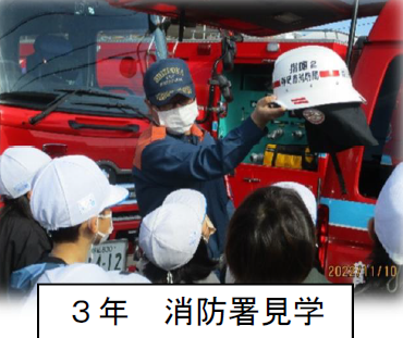 上記写真は、「楽しく、協力し合い、思い出に残る修学旅行」のスローガンのもと、事前に何回も話し合いを重ね「班の人がまとまっている」「メリハリをつける」「みんな笑顔」「けじめをつける」「迷惑や失礼にならない」「あいさつをしっかりする」などどんな修学旅行にしたいか、6年生みんなで納得して決めることができました。また、他の写真は2年生の「バス乗車体験」3年生の「消防署見学」4年生の「福祉(点字、手話、車椅子、アイマスク、盲導犬)体験」の様子です。