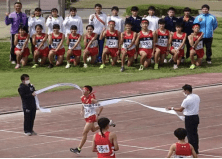 上記写真は、本年度、榛原中学校陸上部が全国大会に出場し、石碑の前での集合写真です。榛原中学校では、団体の部で県大会に優勝をすると校庭内にある石碑に名が刻まれます。本年度は男子4×100mリレーで県大会優勝を果たしたため陸上部の名が刻まれました。メンバーの一人は、「卒業した後にもこれがずっと残ることに何とも言えない重みを感じます。」と誇らしげな表情をしていました。