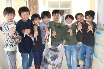 10月29日はお弁当の日です。お弁当を自分で作ってきた子、お家の人と一緒に作った子、お家の人に作ってもらった子、それぞれに自宅から持ってきた思い思いのお弁当をおいしそうに食べていました。また、上記の写真は、2年生、4年生、6年生の有志が朝の登校途中や昼休み等で見つけたゴミを銘銘に持ち帰り環境美化に貢献した様子です。川崎小学校には「小さな親切」が広まっています。