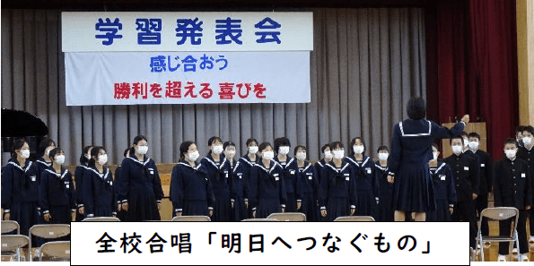 生徒が今年度学んできた成果を発表する「誠愛勇祭 学習発表会」が11月2日に行われました。オープニングセレモニーは、合唱の練習風景の様子をつないだオープニングムービーから始まりました。主張作文の発表、英語スピーチ、各学年2名の代表者による総合学習の発表、全校合唱、学年合唱、吹奏楽部の演奏、昼食を挟んで、縦割り合唱と、生徒たちが練習を積んできた成果が発表されました。