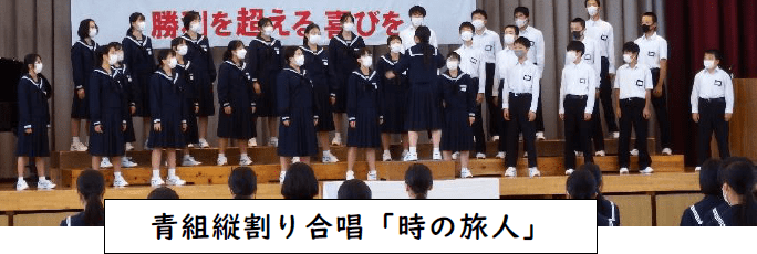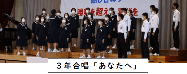 後期生徒会が、「充実・定着」ステージから開始します。上記写真は、2年生がリーダーとなるべく、スポーツ祭の後に3年生や1年生にメッセージを届けました。きっとすばらしい生徒会を創ってくれることと思います。また、上段の写真は、11月2日の学習発表会に向けて合唱練習をしているところです。合唱練習については、3年生のリーダーを中心によりよい歌声づくりをがんばっています。