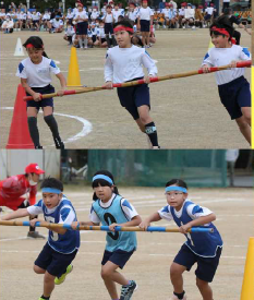 坂部小学校は、10月3日より後期の授業がスタートしました。10月3日から1月5日までは「高め合うステージ」です。授業や様々な活動の中で、友達とがんばりや成長を認め合い、互いに高め合っていくことができるようなステージにしていきます。また、右の2枚の写真は、全校縦割りあそび(リレー大会)の写真です。体育員会の企画・運営により、縦割りグループ対抗でリレー大会を行いました。学年を越えたつながりをさらに深めることができました。