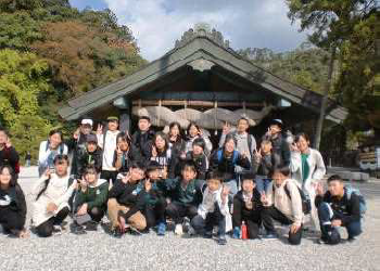 上記写真は、5年生のアースランチフェスティバルの様子です。自分たちが育てた食材や校区で採れる食材を使って、献立を開発、調理と時間をかけて進めていきました。作品名は、「すげ~山!5年生のほこり★さつまっだんご」と名付けたオリジナルの団子です。学校田で収穫したもち米、サツマイモ、お茶を使って創意工夫あふれる一品になりました。下の2枚の写真は、「小さい輪で対話し、大きい輪でさらに対話を重ね学びを深めている授業風景です。そしてもう一枚は、6年生の修学旅行の集合写真です。静岡空港から飛行機に乗って島根県に行ってきました。写真は出雲大社の前で撮った写真です。