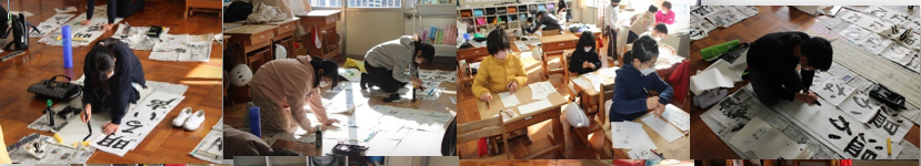 上記写真は、5年生の観音山自然教室と校内書初め大会の様子です。5年生は、厳しい自然の中で「自分で考え行動する」「班やグループで協力する」というめあてを実践することができた2日間でした。また、もう一枚の写真は、校内書初め大会の様子です。1,2年生以外は、体育館に入り凛とした空気の中で冬休みに練習をしてきた成果を発揮すべく、一字一字丁寧に気持ちを込めて書きました。1,2年生は、教室でフエルトペンを使って書きました。