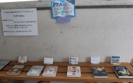 上記写真は、PTA総務のみなさんが「川小の子供たちに本をたくさん読んでほしい」と考え、それぞれの「おすすめ本」を選び、その本の「おすすめポイント」を手作りカードにして準備をしてくださいました。