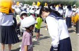 上記写真は、牧之原中学校の1年間の歩みの一端です。左の写真は、6年生が中学校に来て行った一日体験学習の様子です。中央の写真は、家庭科の授業で行ったパパママ体験の様子です。そして、右の写真は、小中合同で行った避難訓練の様子です。
