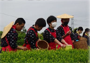 毎年恒例の中学校学校園でのお茶摘みを今年も行いました。1年生と6年生3年生と5年生、2年生と4年生がペアになってお茶摘みをしました。一芯二葉を意識して、ていねいに新芽を摘むことができました。収穫したお茶は、JAで荒茶にする工程を経て、地元のお茶農家さんで製茶にしていただきます。どんなお茶になるか楽しみです。