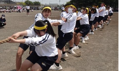5月18 日(木)、活力祭「体育祭の部」を開催しました。生徒会スローガン「日進月歩」のもと、3学年7色の縦割り対抗で実施しました。当日は、7人の団長による力強い選手宣誓で始まり、各種目に精一杯取り組む生徒の姿を多くの保護者の皆様や地域の方々に見ていただくことができました。