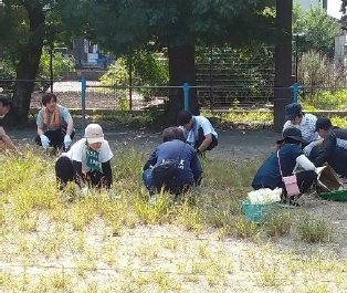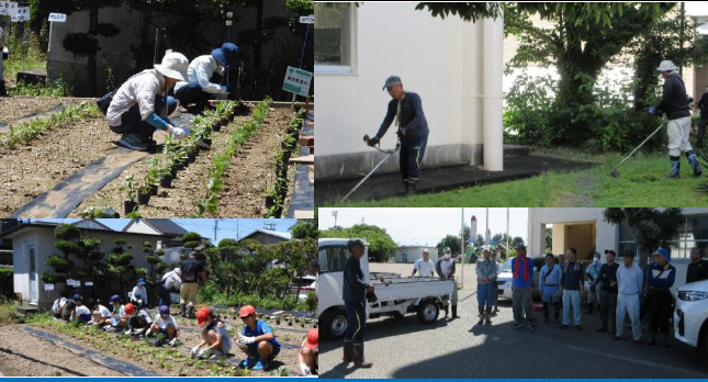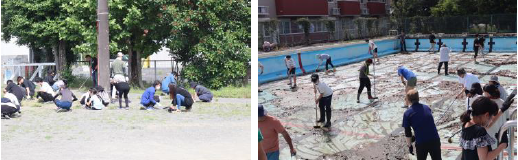 上記右の写真は、PTA環境整備活動の様子です。保護者の皆様方のご協力の下、校内の草刈を中心に精力的に整備をしていただきました。感謝申し上げます。