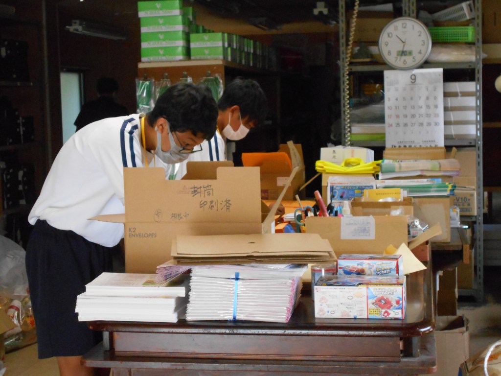 2人とも誠実で丁寧な仕事ぶりでした。新入生用品販売の準備や、荷造り、学校への配送、商品のポップづくりなどに一生懸命取り組みました。3日間立派にやり遂げた2人に拍手を送りたいと思います。
