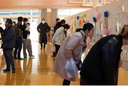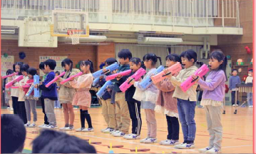 来年度、入学する新入生の入学説明会が開かれました。3年ぶりに1年生と新入生による合同授業も行われました。体育館で1年生が新入生一人ひとりの名前を呼んで会場の音楽室に連れて行ってくれました。音楽室では、じゃんけん列車をしたり、生活科で作ったおもちゃを使って遊んだりしてくれました。1年生のお兄さん、お姉さんぶりがとてもすてきでした。