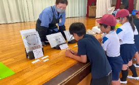 5月20日(金)に1・2・6年生が茶問屋ショーゴさんに人形劇を見せていただきました。お話の内容にドキドキ・わくわくしながら楽しそうに見ていました。笑顔がいっぱいの観劇でした。【写真左】 5月24日(水)に6年生が社会科の歴史と防災についての学習のため、登呂遺跡博物館と県地震防災センターに行ってきました。登呂遺跡では、火起こし体験や大昔の人たちの生活の様子を知ることができました。【写真右】