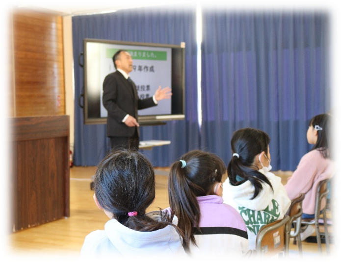 上記写真は、冬休みが明け新しいステージ「実をむすぶステージ」の様子です。校長先生からは、『夢』についてのお話をいただき、代表児童の言葉からは『日々の授業』について発表を頑張り授業をもっともっと頑張りたい。と力強い決意が話されました。このステージでは、1年間お世話になった物、人、ことに感謝の気持ちを持ち、4月から始まる新しい学年に向けて準備をするステージです。この1年で成長したことを確かめ、自分自身の「勇気の実」「優しさの実」がたわわに実ったことを実感して生活をしていきます。