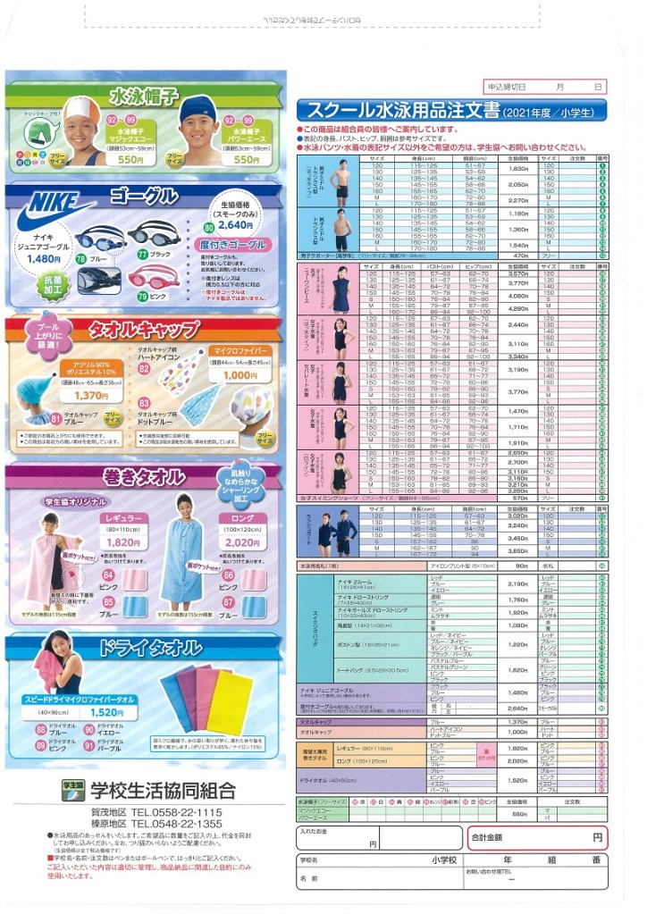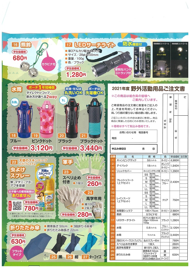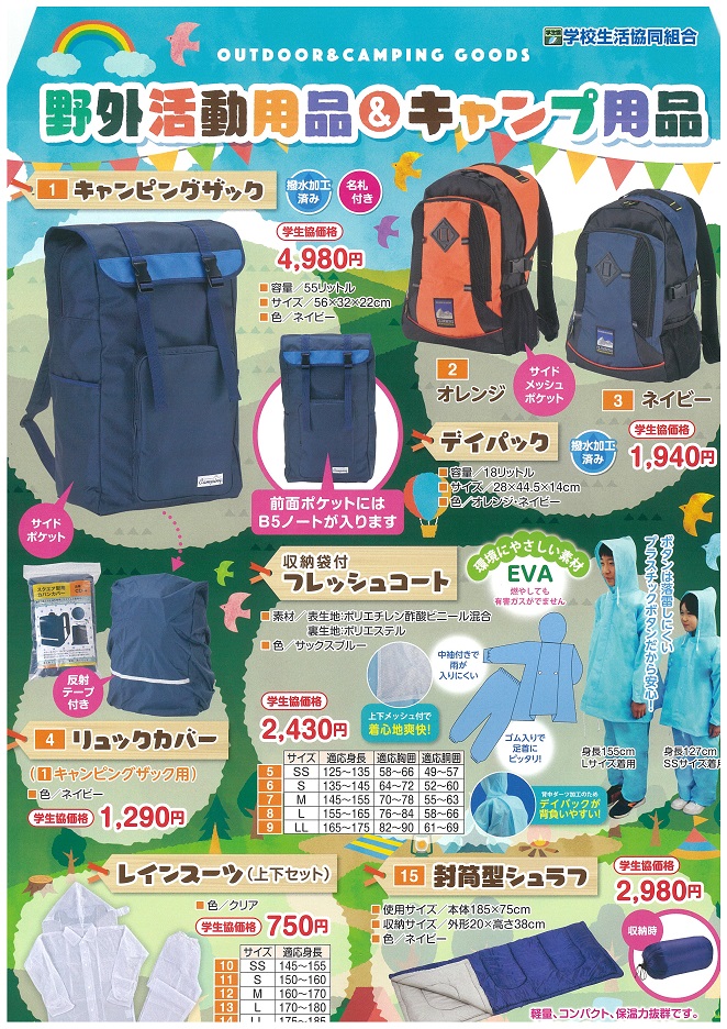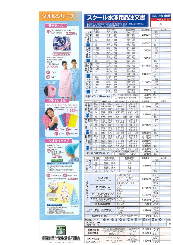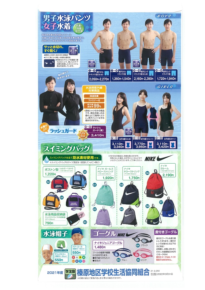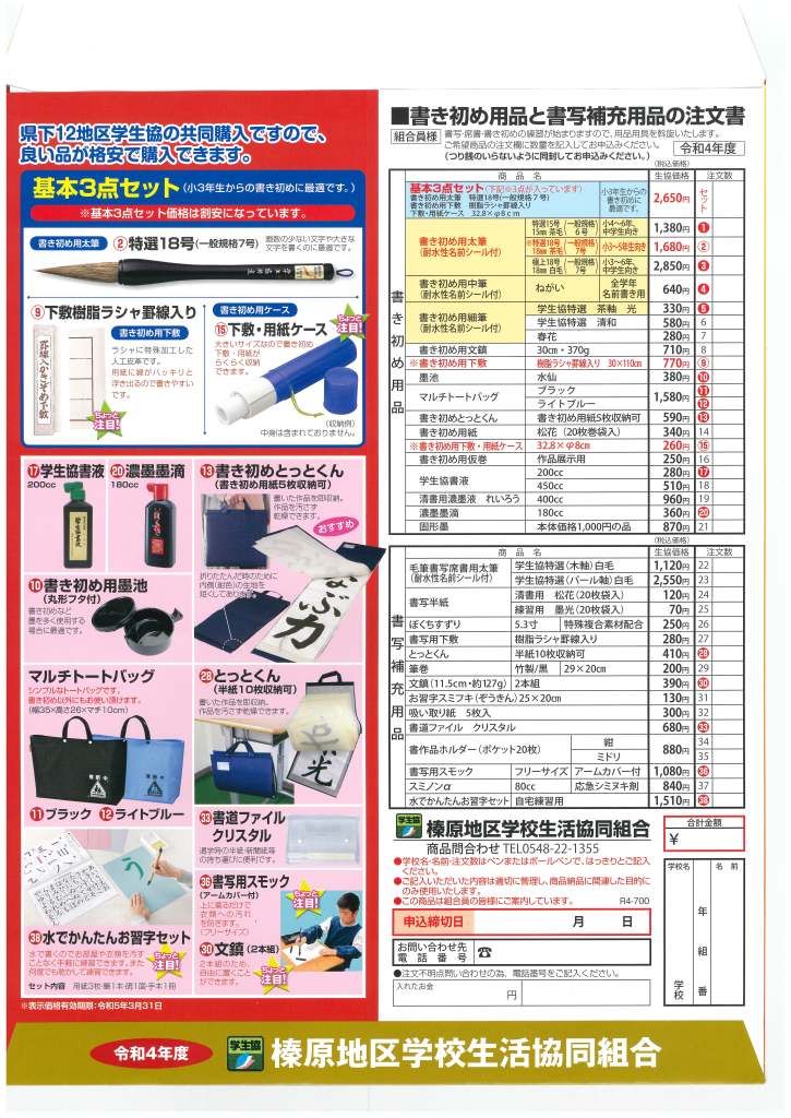 榛原地区学校生活協同組合ではノート・体操シャツ・上ぐつ・体育館シューズ等学校生活における必需品を取り扱っております。また、カタログ販売にて下記の商品を扱っています。