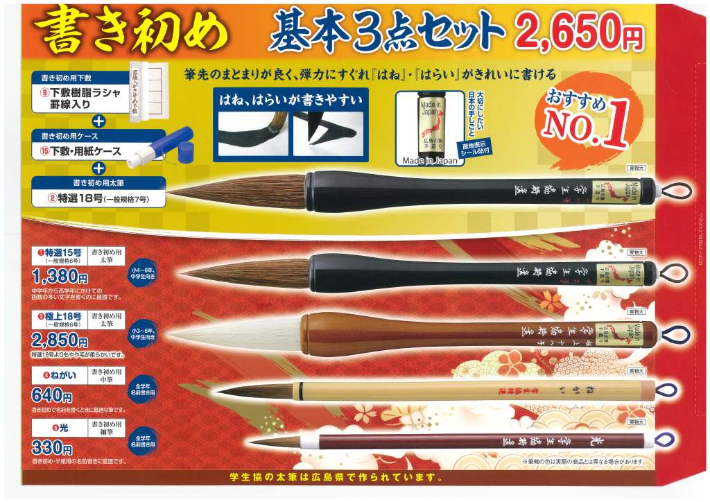 書道・書初め用品の内容です。補充用の参考にしてください。