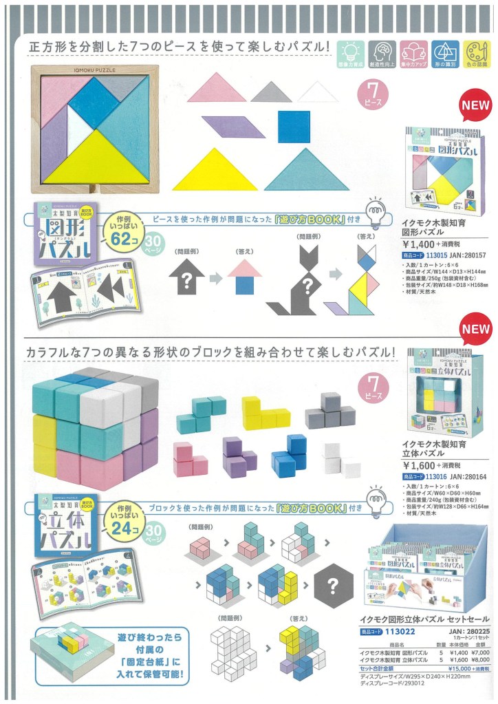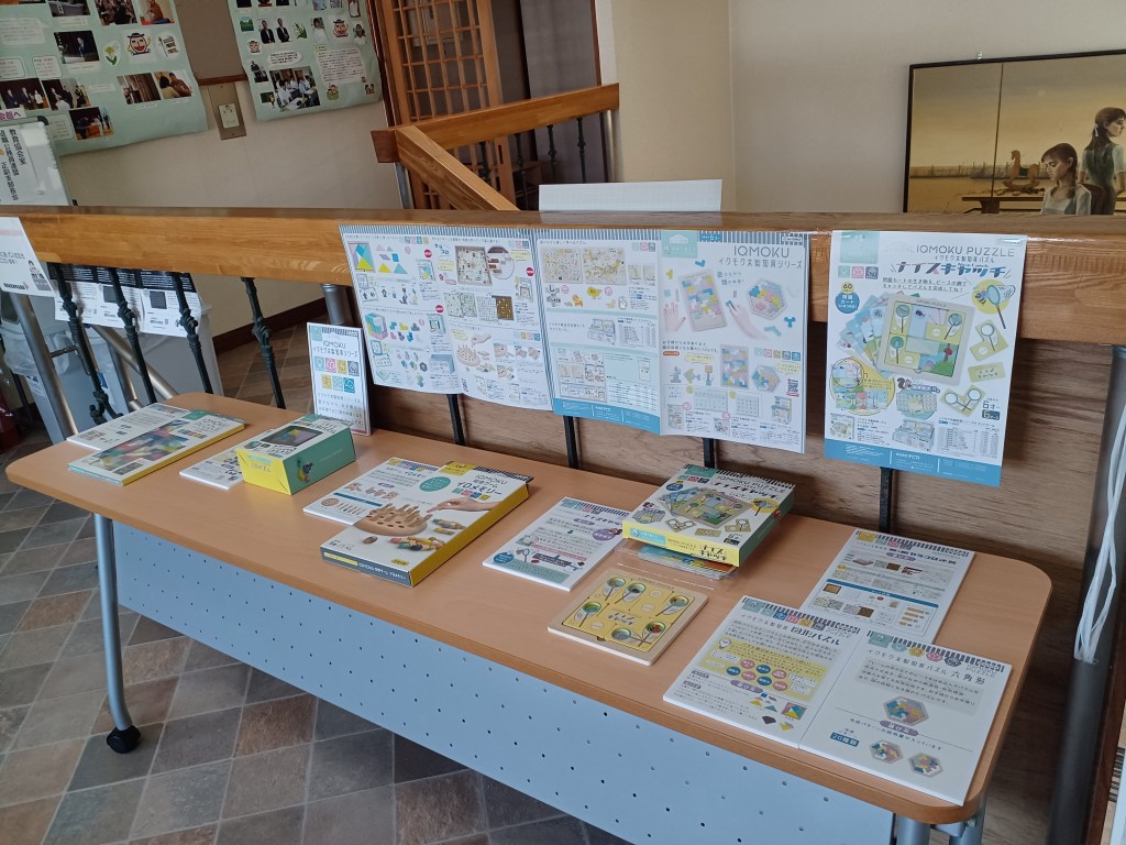 榛原学生協では、写真のような木製知育玩具の展示・販売を開始しています。これは、ゲーム感覚で楽しみながら頭の体操や右脳のトレーニングができる、平面や立体のパズルなどを中心とした知育玩具です。子供が外で遊べない時、室内で過ごす時などに最適です。なお、榛原地区教育会館2階ロビーに展示(写真下)もしていますので、ご興味があればぜひ手に取って見てください。