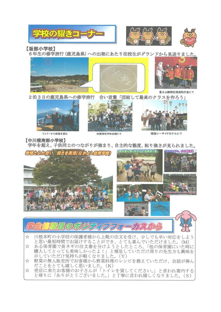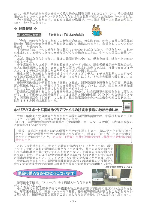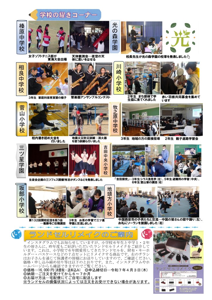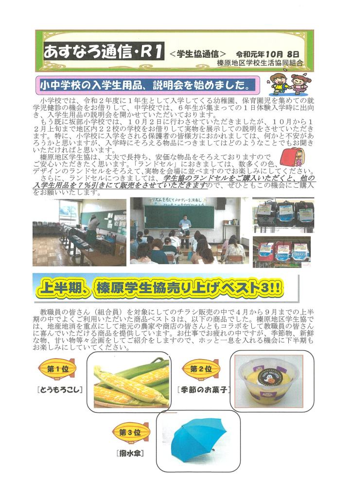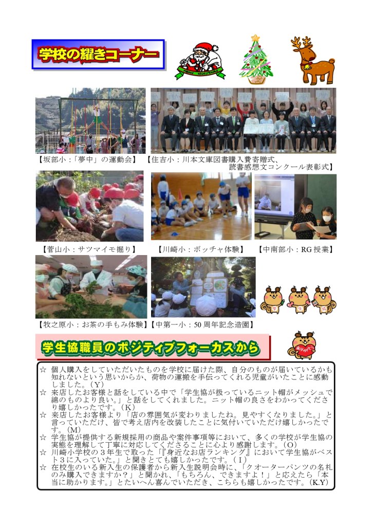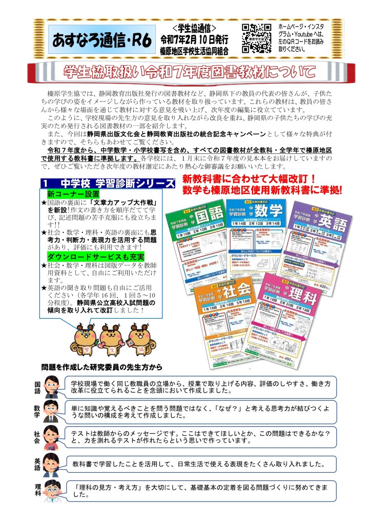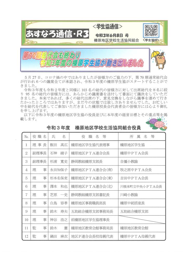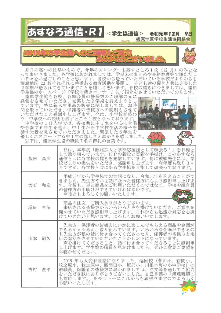 榛原地区学生協には、本年度1年間ご愛顧の程、誠にありがとうございました。ここに榛原学生協が歩んだ1年間を誌面で振り返りたいと思います。御連絡ありがとうございました。ご承知の通り、榛原地区学生協はものを売るだけでなくそれぞれの学校に寄り添い、学校のため、児童・生徒のため、保護者のため、教職員のために仕事をし、汗を流すことを使命と考え取り組んでいます。このことが少しでもご理解いただけたならと思います。次年度も役職員一同力を合わせて使命を忘れず一生懸命取り組んでまいりますのでよろしくよろしくお願い致します。