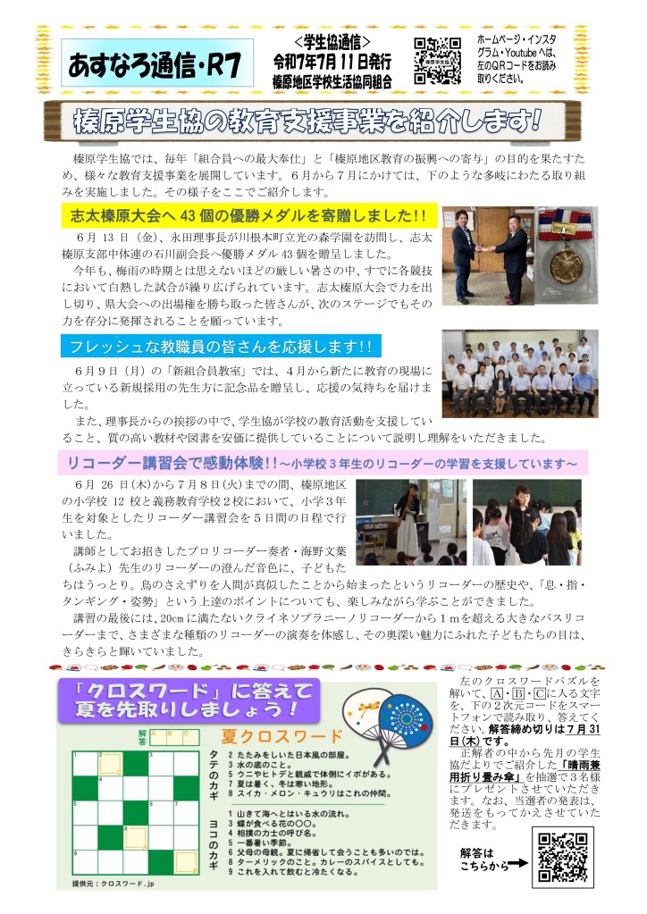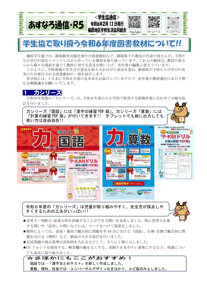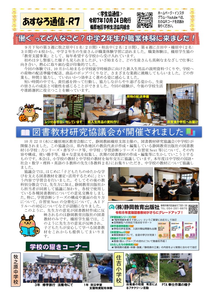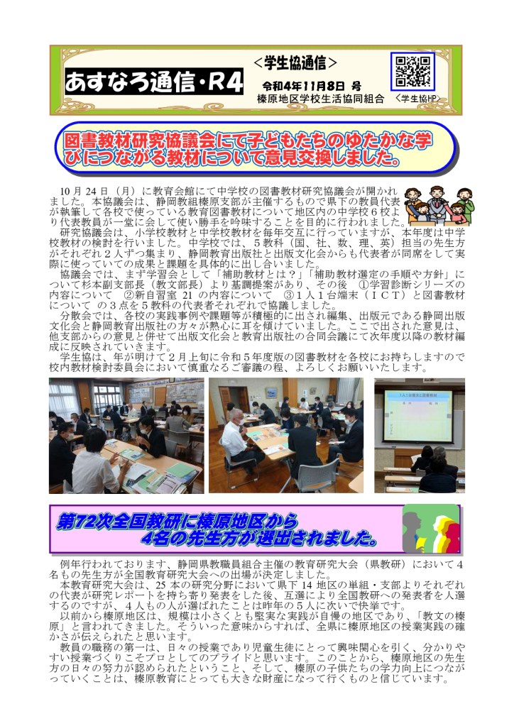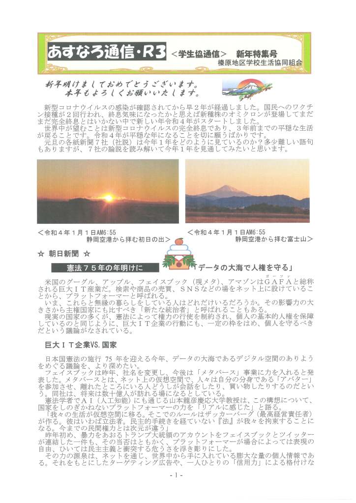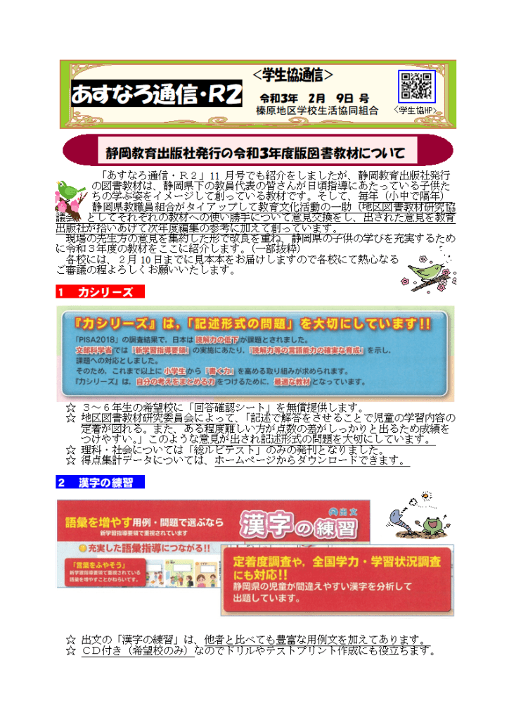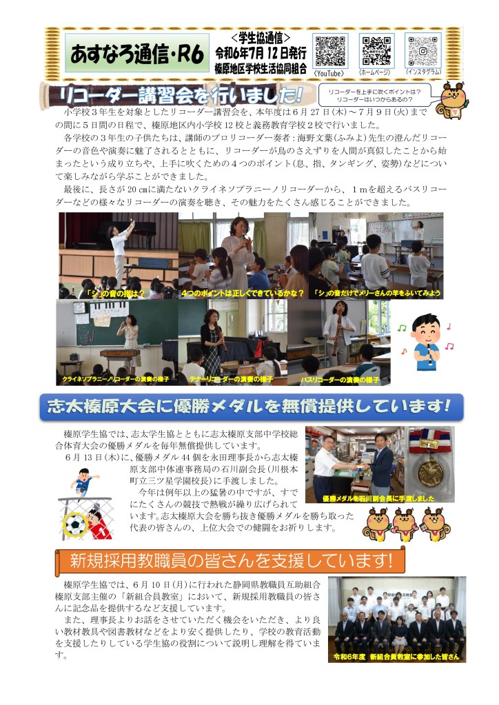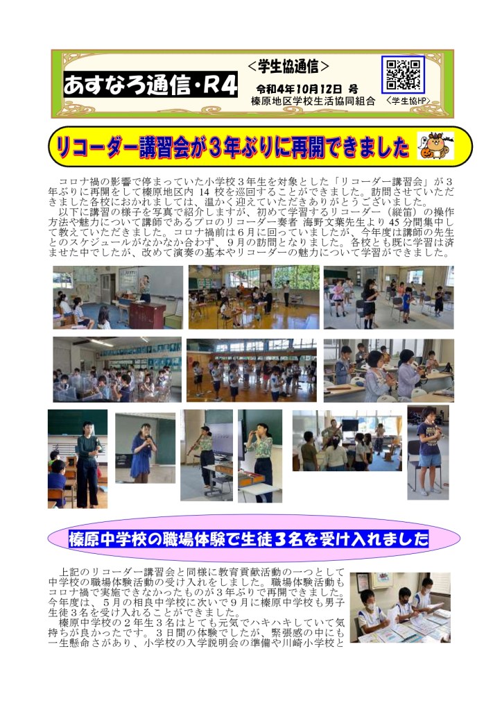 令和4年度がスタートしました。今年度も昨年度と同様に「各学校の輝き」を満載した学生協便り(「あすなろ通信・R4])を毎月本ページに掲載して行きます。榛原地区学生協は、単に物品を販売するだけではなく各学校、組合員の皆様方の応援団として「より良いものをより安く」「教育貢献」「地域貢献」を目指して取り組んでまいりますのでよろしくお願いいたします。